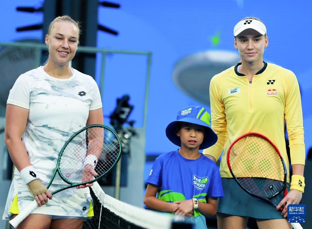 1月18日,莱巴金娜(右)和布林科娃在赛前合影。新华社记者 马平 摄