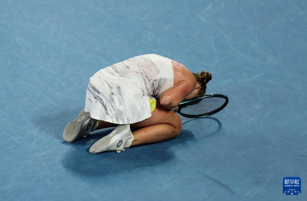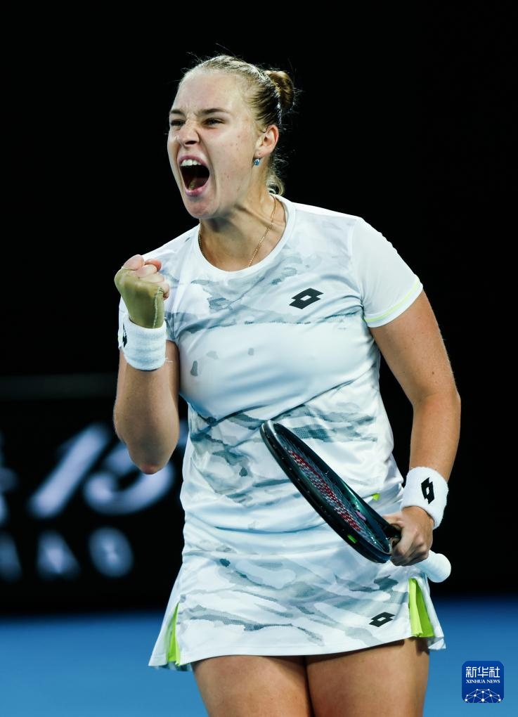 1月18日,布林科娃在获胜后庆祝。新华社记者 马平 摄