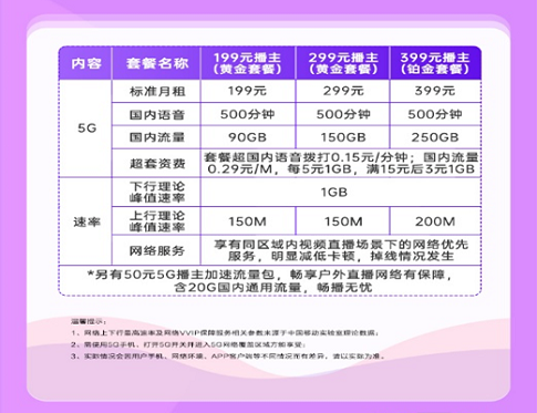 看到这样的5G套餐,对移动流量需求很大的主播们都有从5G普通套餐升级为5G直播套餐的很大意愿,从而带动ARPU的提升,极大促进了5G的变现。
