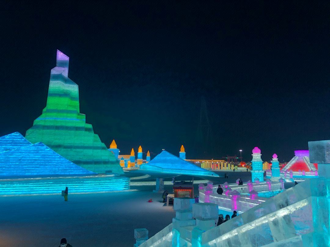 “以前,每一个景观都要手动开启电闸。今年,我们从电脑端或移动端App实时、定时控制景观灯光效果的变化,实现整个园区冰建景观的灯光联动。我觉得每年都还是有进步的。”