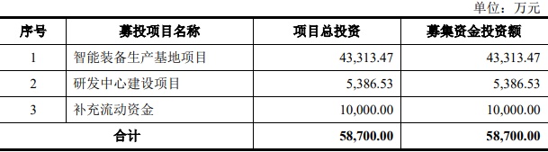 诚捷智能原拟在上交所科创板公开发行股票不超过2,965.8890万股(不考虑超额配售选择权),占发行后股本总额的比例不低于25%。该公司原拟募集资金58,700.00万元,分别用于智能装备生产基地项目、研发中心建设项目和补充流动资金。