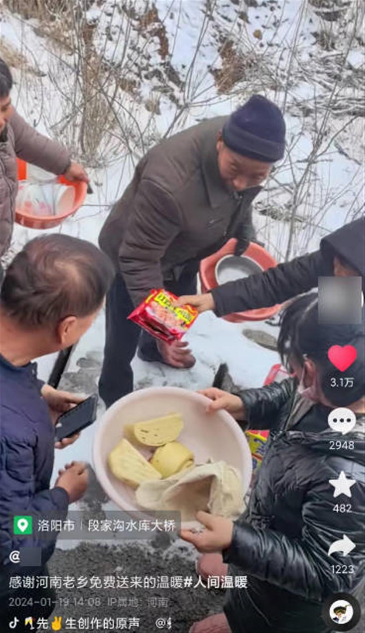 后来,吕先生将所拍视频分享到了网上,“感谢河南老乡免费送来的温暖。”村民们的热心举动,赢得了众多网友的点赞和好评。吕先生说,当时没有留几位村民的联系方式,也不知道他们住在哪个村,猜测应该就来自段家沟水库大桥附近的村镇。