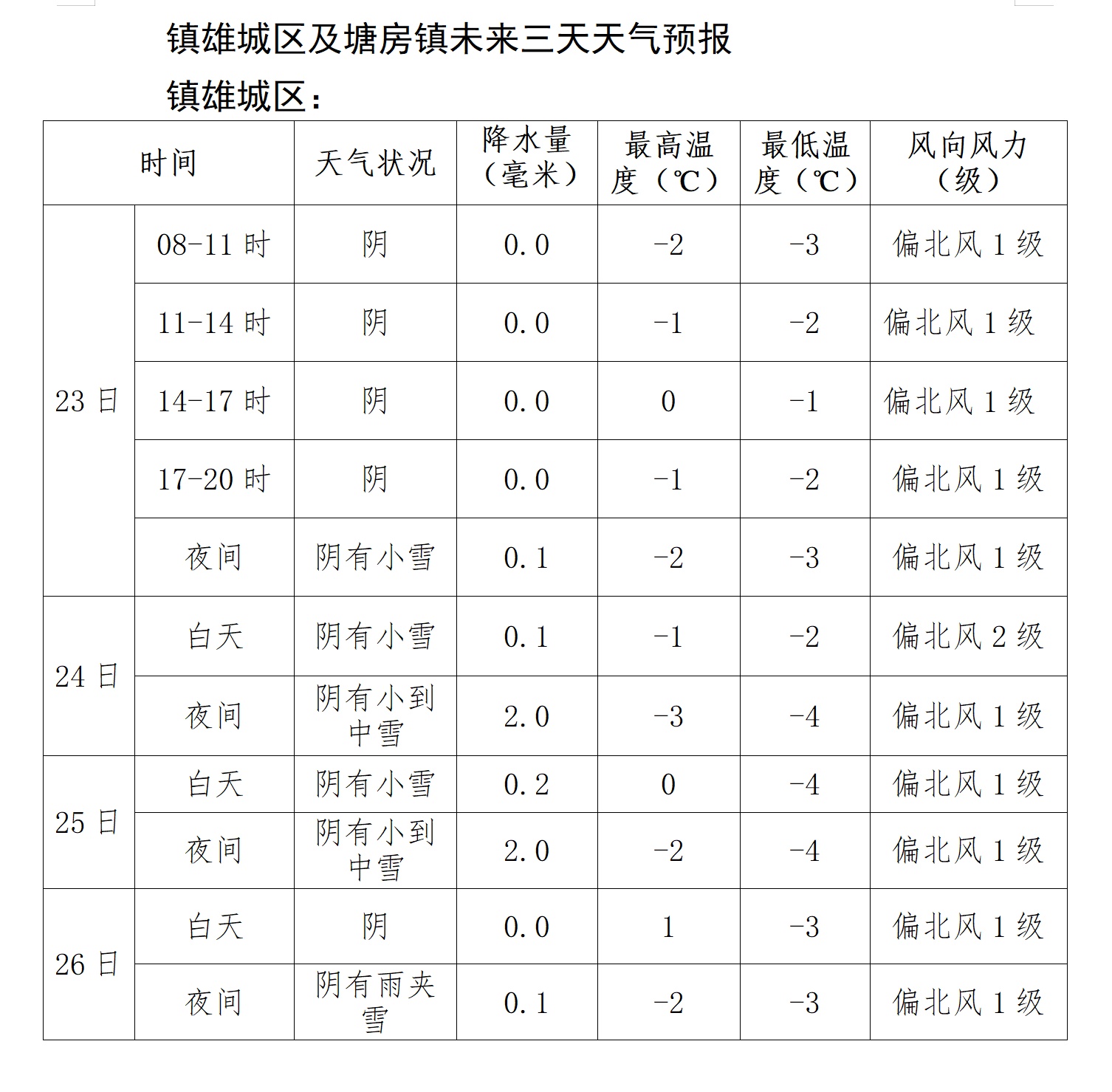 1月23日8时,据云南省气象部门发布:未来三天(1月24日至26日),云南镇雄将持续低温雨雪天气,最低气温-4℃,最高气温0℃左右。滑坡现场各项救援工作仍需做好安全防范。