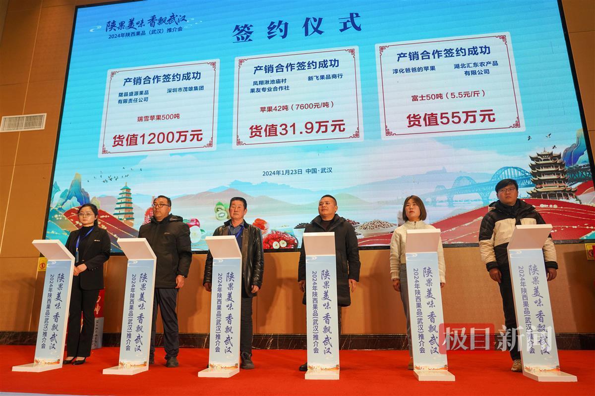1月23日,2024年陕西果品(武汉)宣传推介会在武汉举办,来自陕西宝鸡、咸阳、渭南等地的果品在武汉开展系列产销对接和宣传推介活动,拓展苹果、猕猴桃、酥梨、柿饼等陕西特色果品在武汉等华中地区的消费市场。