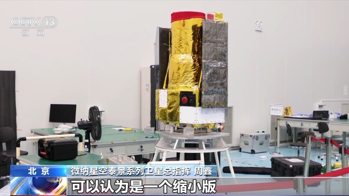 在这个位于北京的卫星厂房内,泰景三号02星、泰景四号03星等5颗卫星正在做前往发射场前的最后准备工作,我们可以在这个时间点,看到卫星最完整的样子。