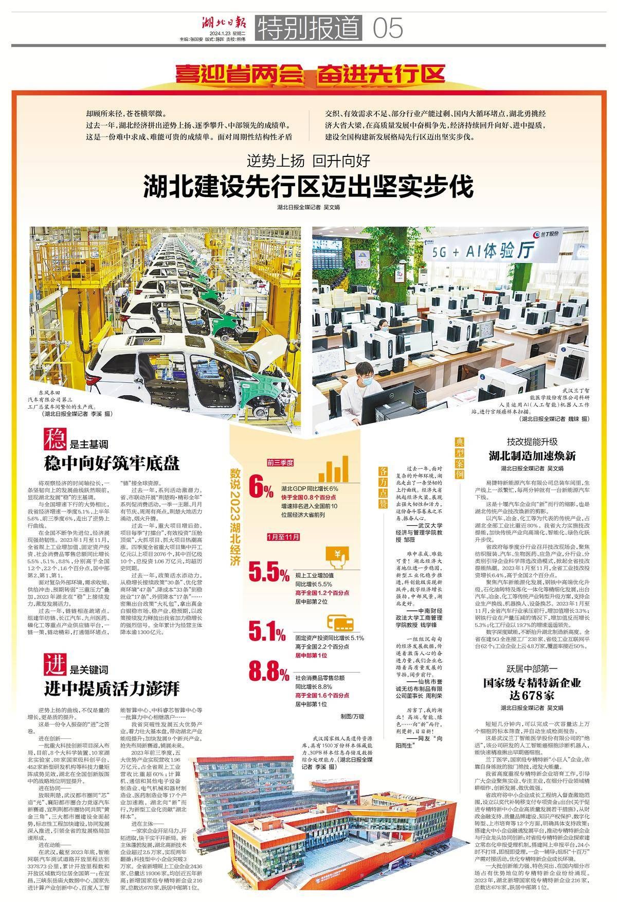面对复杂外部环境,需求收缩、供给冲击、预期转弱“三重压力”叠加,2023年湖北在“稳”上接续发力,激发发展活力。