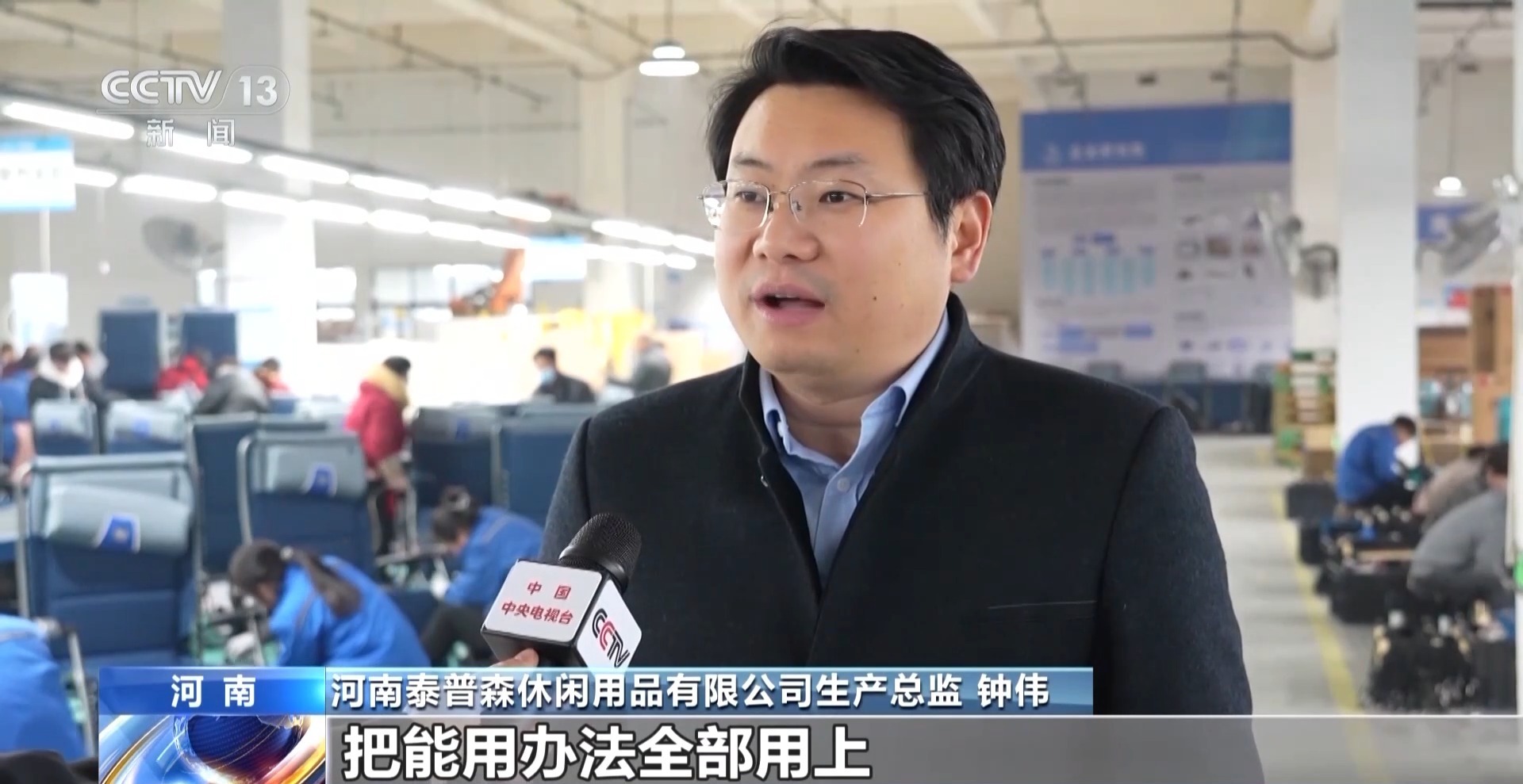 河南泰普森休闲用品有限公司生产总监 钟伟:把生产线全开,把能用办法全部用上,整合我们上下游供应链的资源,来提高配套率,来及时保障我们客户的交付。
