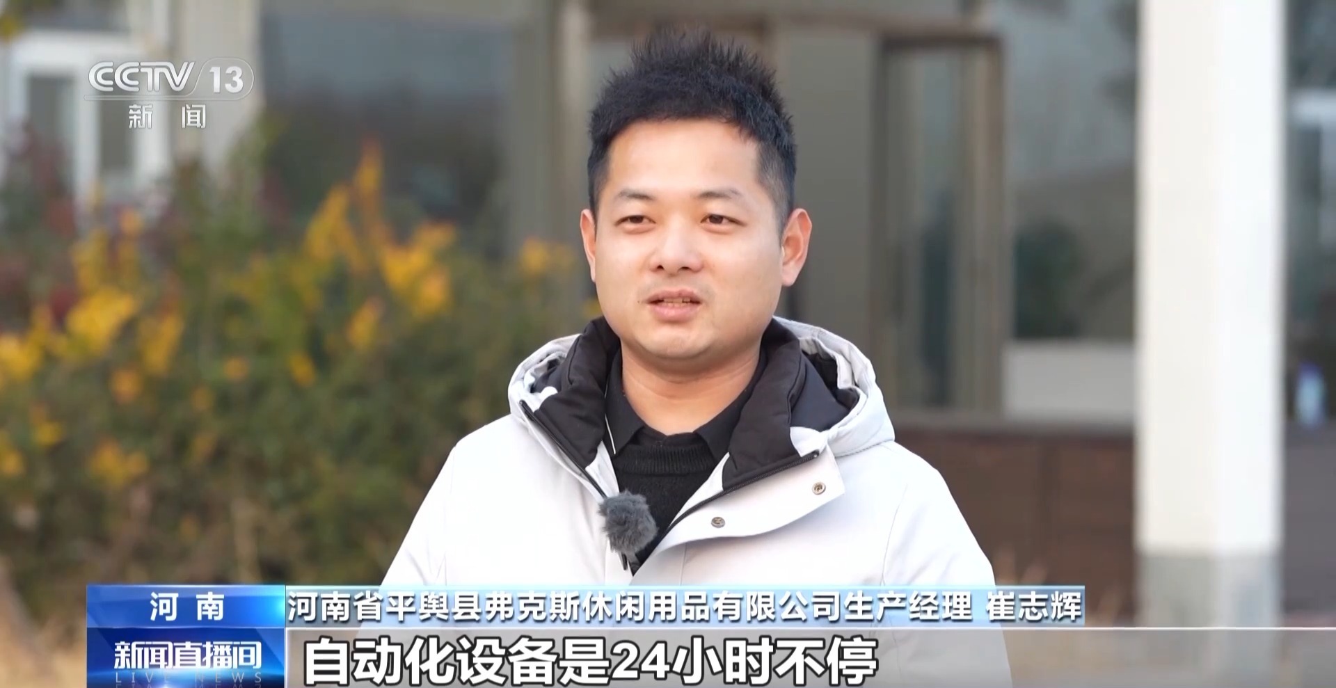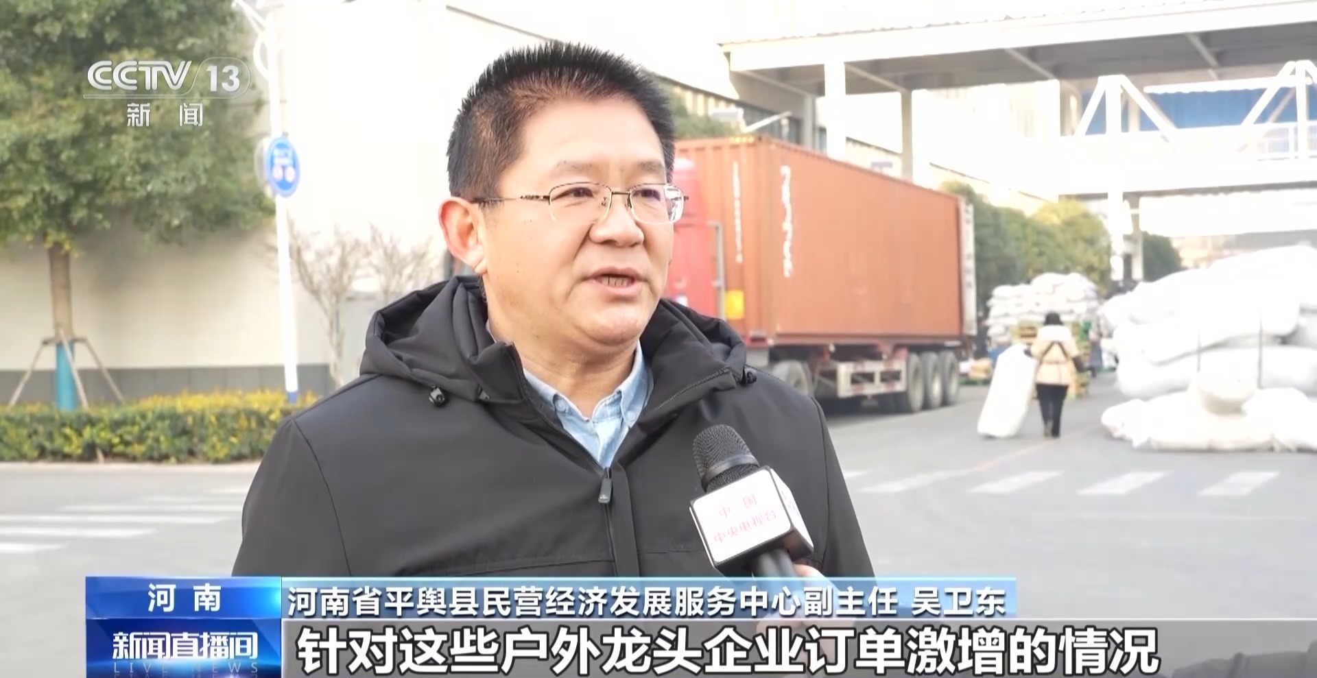 河南省平舆县民营经济发展服务中心副主任 吴卫东:针对这些户外龙头企业订单激增的情况,我们为企业派驻了产业服务专班,为企业进行招工、生产要素保障等服务。