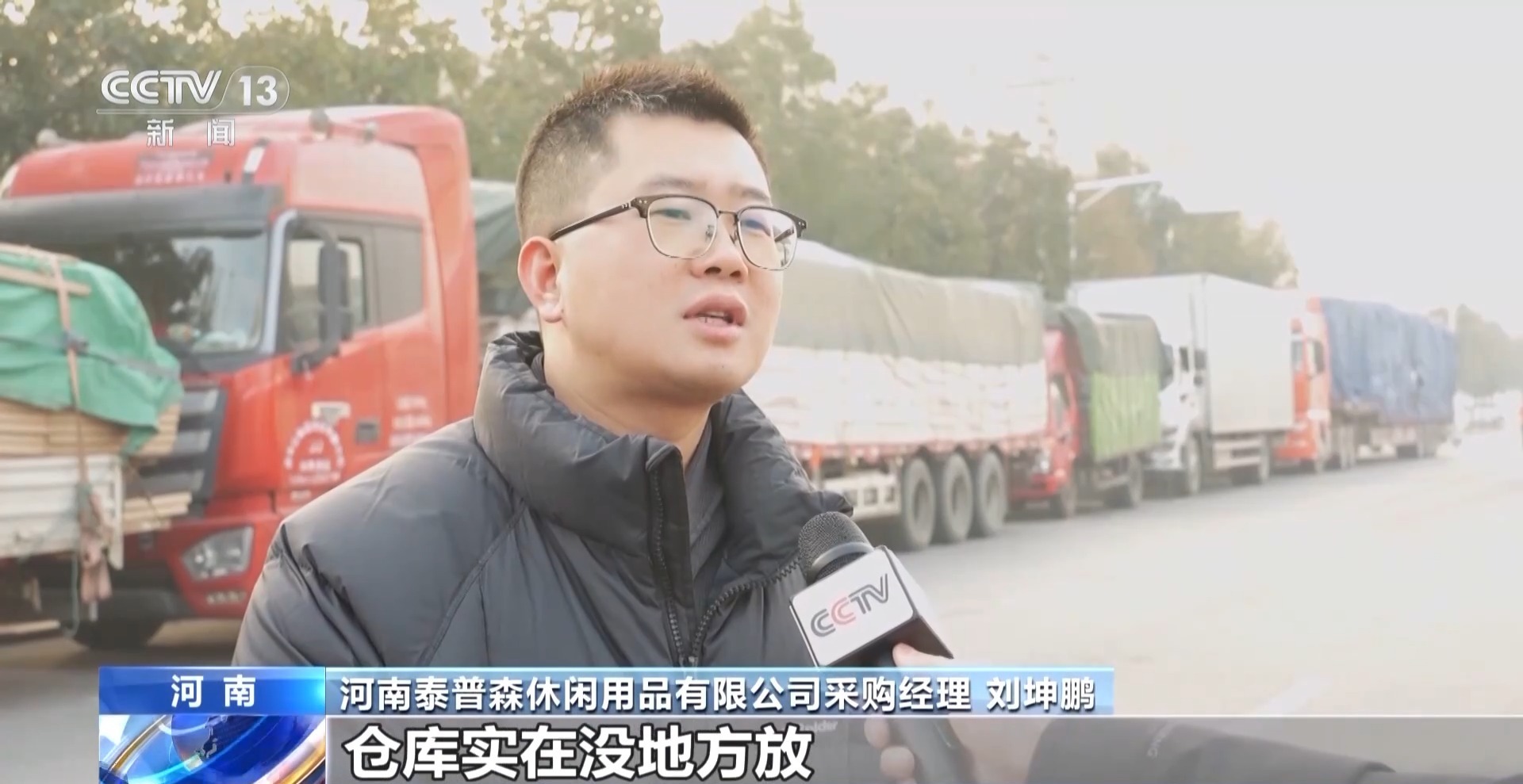 河南泰普森休闲用品有限公司采购经理 刘坤鹏:最近订单集中,仓库实在没地方放。像我们生产所需要的五金配件基本上都是生产上线前一天送到。像我们露营推车上的小轮子,我们的日需求量是三万到四万个。