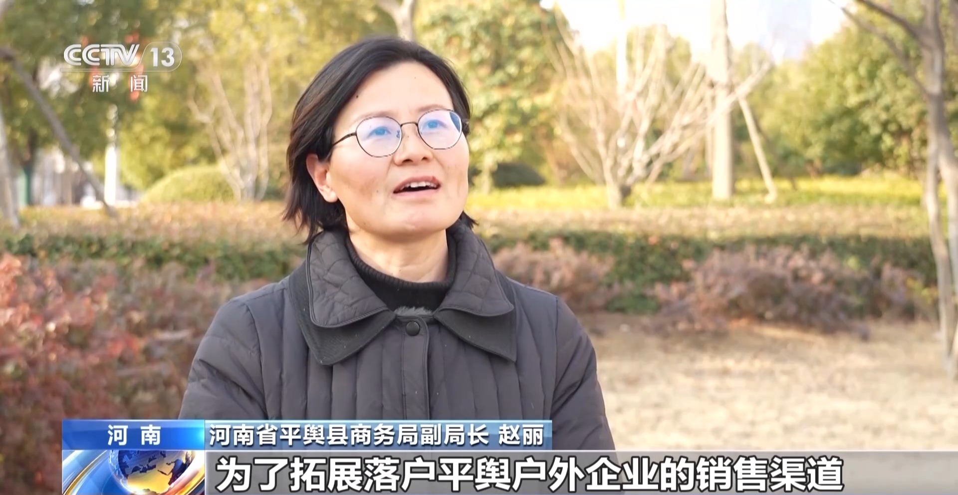 河南省平舆县商务局副局长 赵丽:为了拓展落户平舆户外企业的销售渠道,帮助企业搭建了服务平台,出台跨境电商服务平台企业的补贴政策。