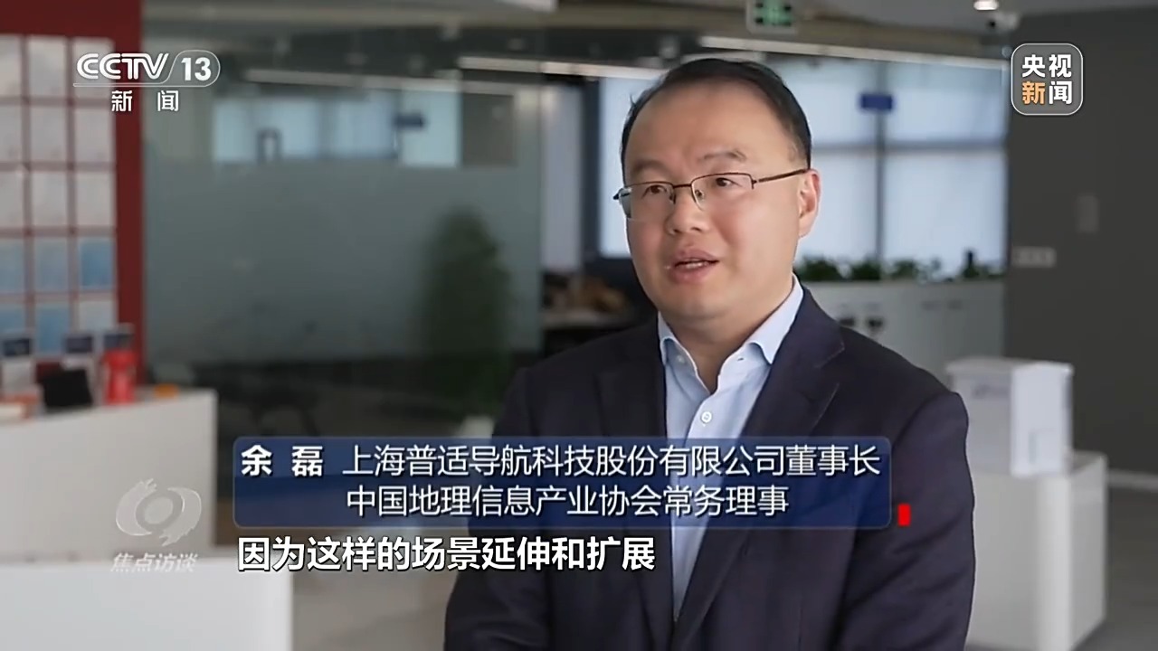 上海普适导航科技股份有限公司董事长、中国地理信息产业协会常务理事 余磊:卫星技术和其他技术融合创新,整个应用场景不断扩大和延伸。倒过来,因为这样的场景延伸和扩展,使我们产业的体量或者说容量发生几何级变化,推动产业往前发展。
