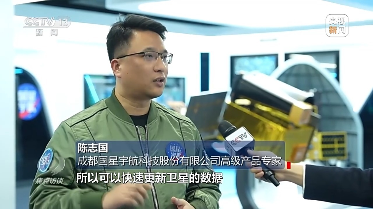 成都国星宇航科技股份有限公司高级产品专家 陈志国:我们的卫星运行在500公里的轨道高度,每90分钟绕地球转一圈,可以快速更新卫星数据。我们基于卫星的这些数据,在卫星遥感的数字城市里面,可以以每分钟建设一平方公里的速度来建模。相比于传统方式,可以低成本、快速地大规模建设数字城市。