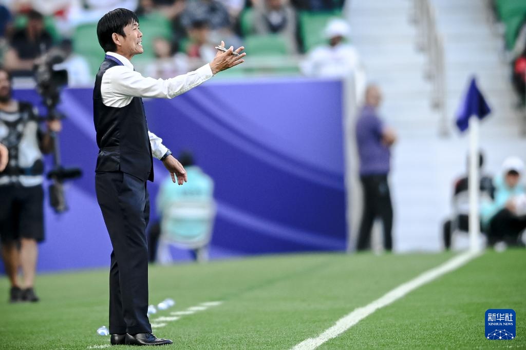 1月24日,日本队主教练森保一在比赛中指挥。新华社记者 江汉 摄
