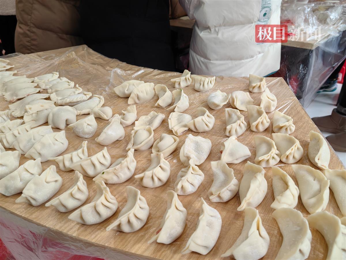 有的和肉馅、有的擀面皮、有的包饺子、有的煮饺子,大家分工明确,配合默契,现场气氛其乐融融,充满了浓厚的节日氛围。