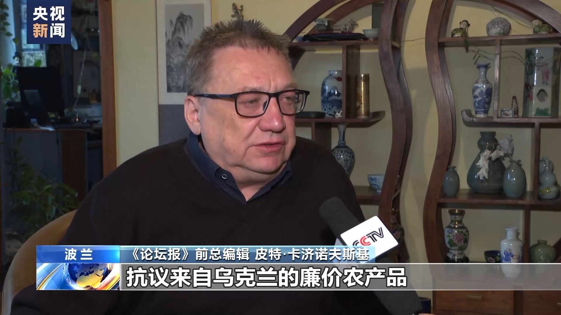 《论坛报》前总编辑 皮特·卡济诺夫斯基:现在波兰与法国、德国、罗马尼亚,还有立陶宛的农民一起,抗议来自乌克兰的廉价农产品。尽管乌克兰不是欧盟成员国,但乌克兰利用自己的处境,利用与俄罗斯交战的事实,获得了将其农产品带入欧盟的权利。