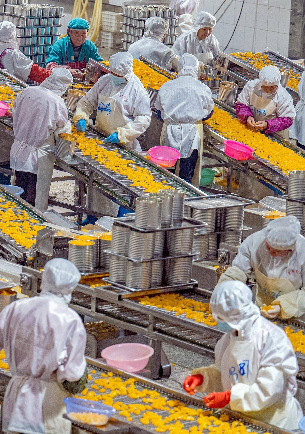 宜昌荣盛食品有限公司加工车间内,十条生产线马力全开加工柑橘罐头。(湖北日报全媒记者 刘曙松 通讯员 岳黎 摄)