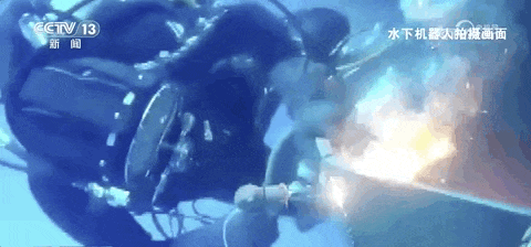 水下切割不仅容易被电伤,还会产生一千多度的高温。由于潜水员的身体在水流的冲击下难以稳定,极易被灼伤。“切割作业的时候,温度很高,一不小心离得太近,火花掉到手上就容易被烫伤。”