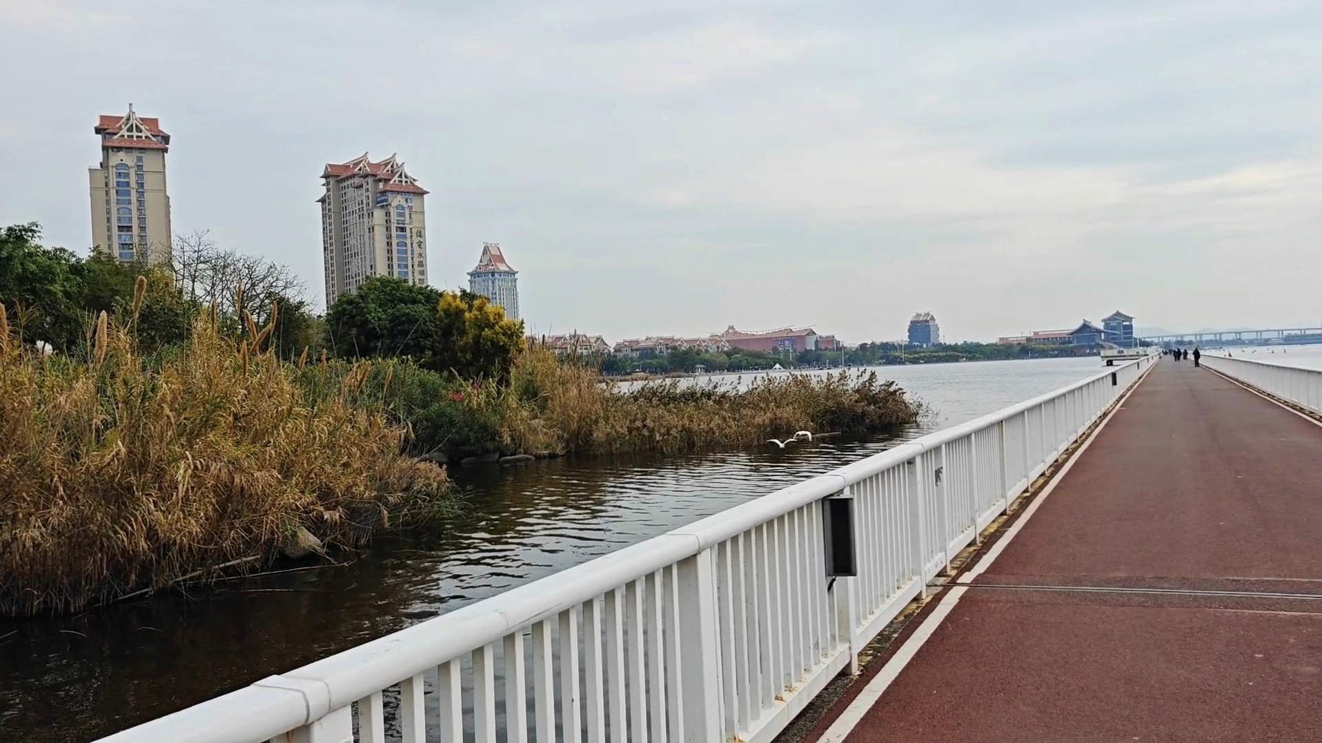 在厦门市集美区杏林湾,有一条“漂浮”在海上的自行车道。亮红色的路面搭配雪白的护栏,从海面上笔直穿过,骑行其上,微风拂面,惬意非凡。