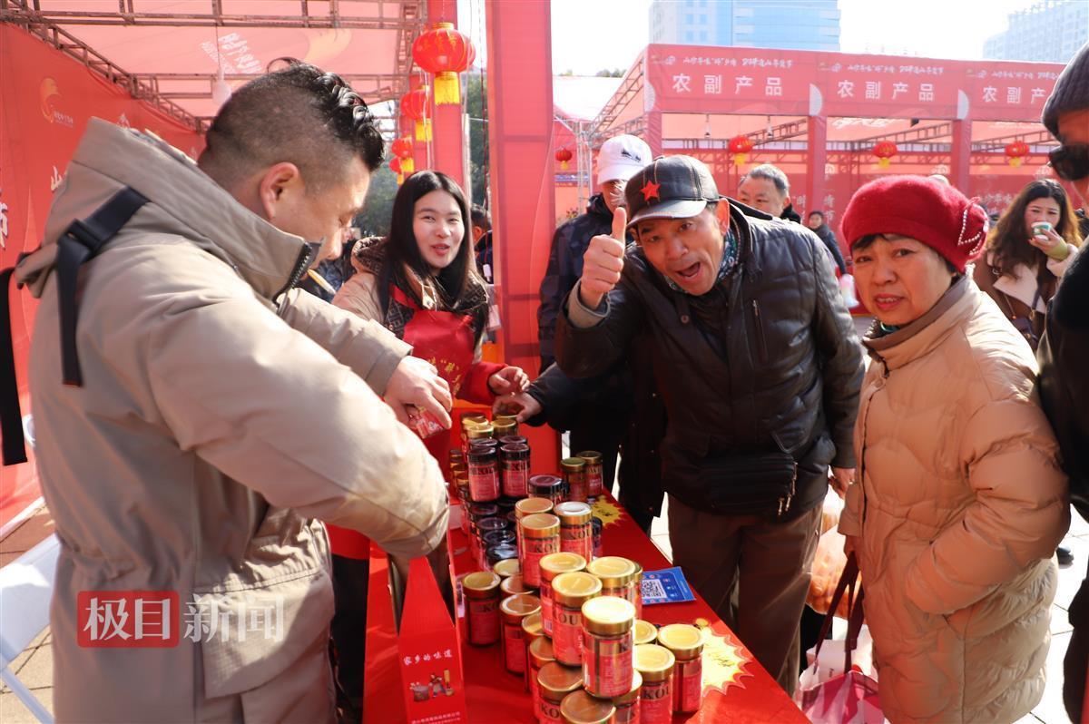 “这里的货品很齐全,选择的时间点也好,很多通山特有的食品,正好买回去过年一家人品尝。”来自咸宁的郑女士一家告诉记者,他们买了好几瓶通山的特色牛肉酱,还买了桂花酒,收获满满。