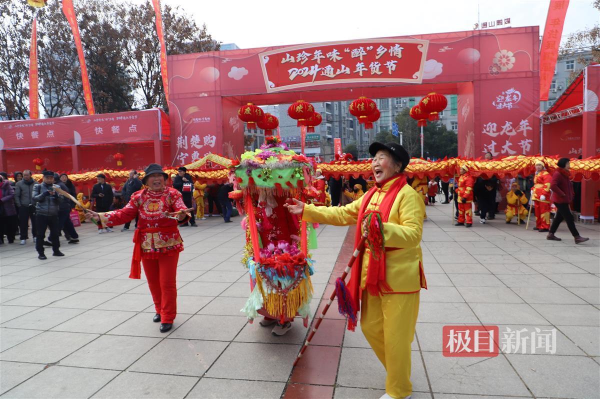 在活动主会场通山县人民政府广场,举行了年货节开幕式。记者看到,舞龙舞狮、采莲船等传统民俗表演,吸引了众多市民游客前来观看。开幕式上举行了民间舞蹈、情歌独唱、马面裙走秀等丰富多彩的文艺节目,热闹喜庆,营造出了迎接新年到来的欢乐氛围。