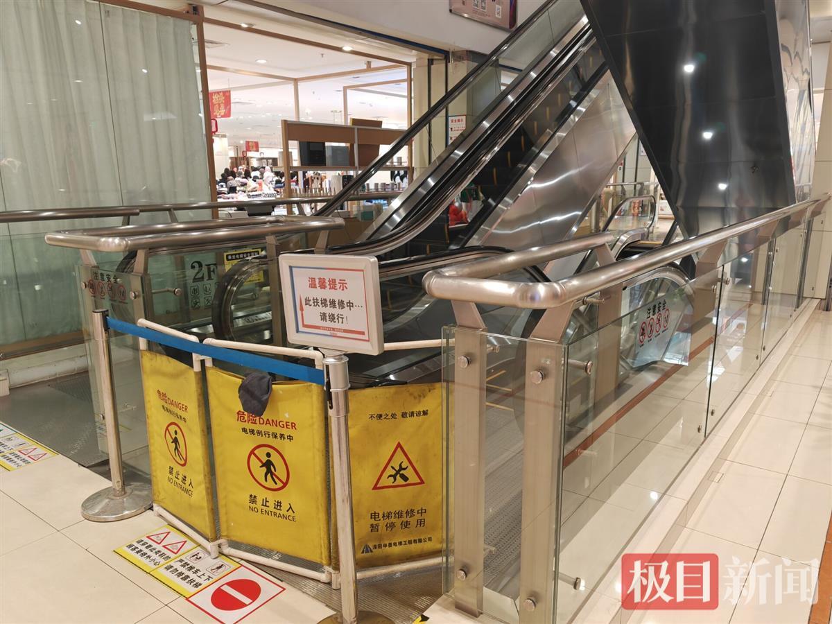 1月26日上午,极目新闻记者来到该商场,看到视频所显示的事发扶梯仍处于停用维修的状态,出入口两端设有警示标识,并有围挡封闭。商场多名店铺营业员表示,据他们了解,25日确实有人被困在扶梯的盖板下。