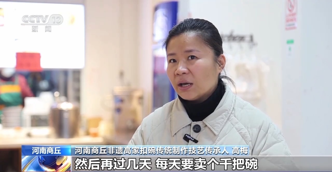 河南商丘非遗高家扣碗传统制作技艺传承人 高梅:每天大概有个四五百碗,然后再过几天,每天要卖个千把碗。