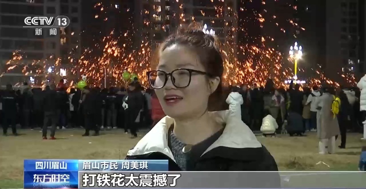眉山市民 周美琪:打铁花太震撼了,也吃了很多美食,我觉得这个氛围非常不错。