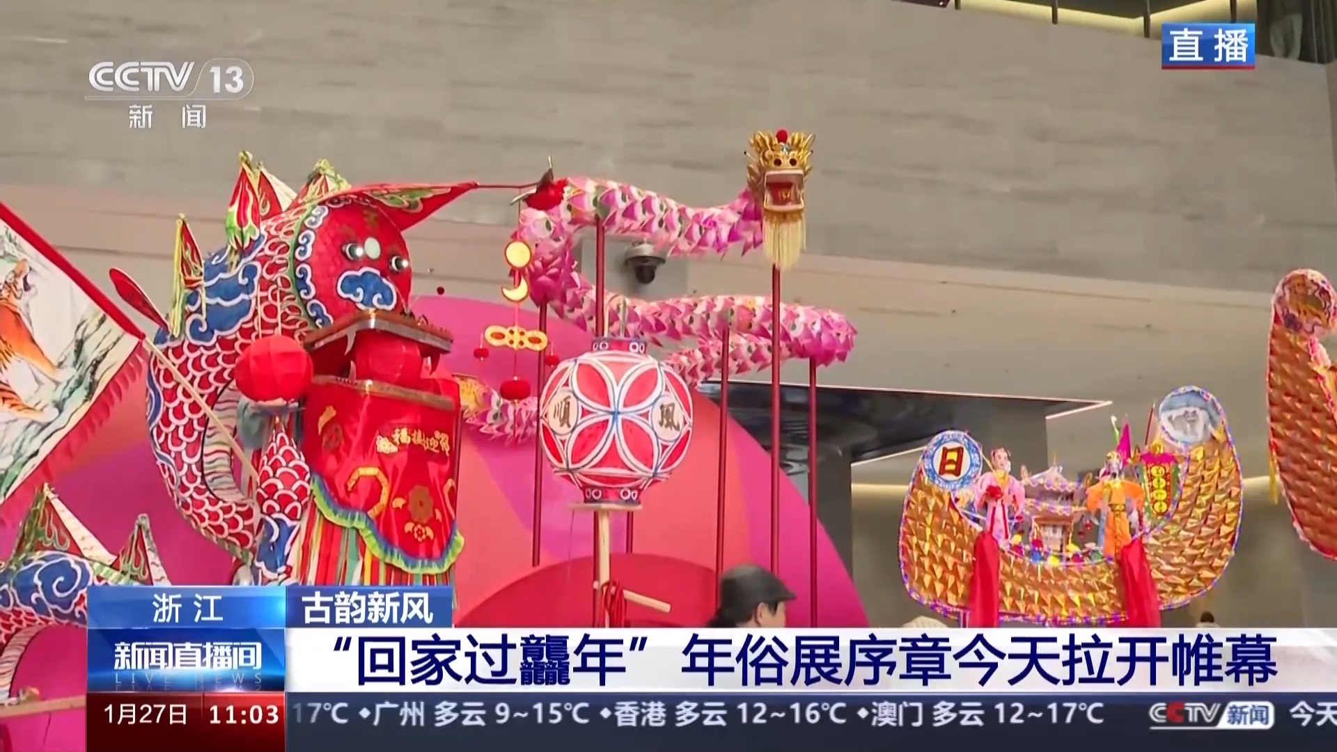 总台记者 高珧:今年是“甲辰龙年”,所以“回家过龘年”年俗展的主角自然是龙了,目前整个展陈还在紧锣密鼓地布置中,但是序章今天已经拉开帷幕。