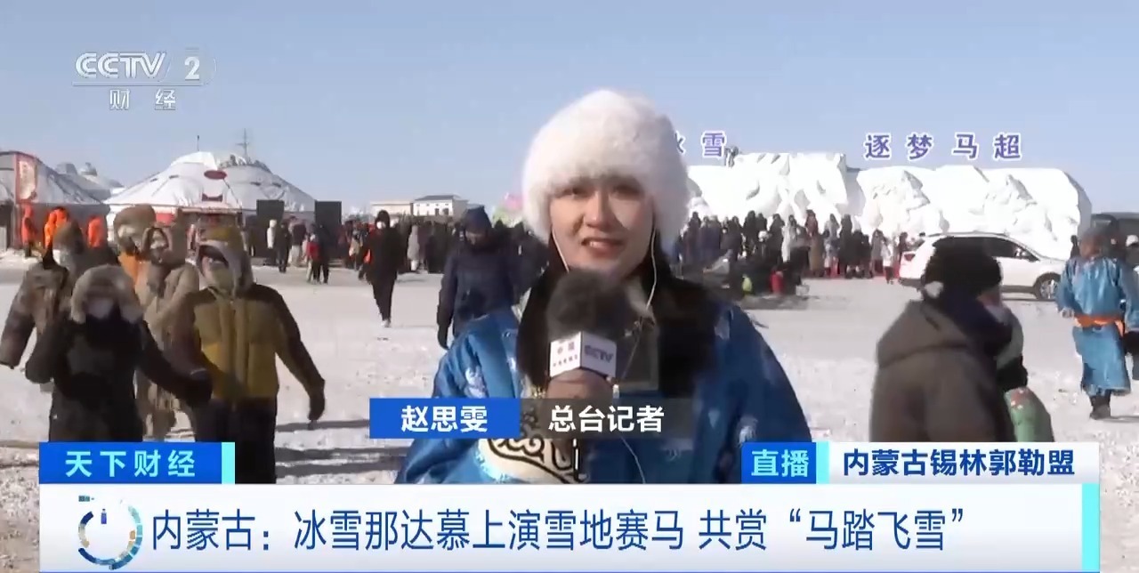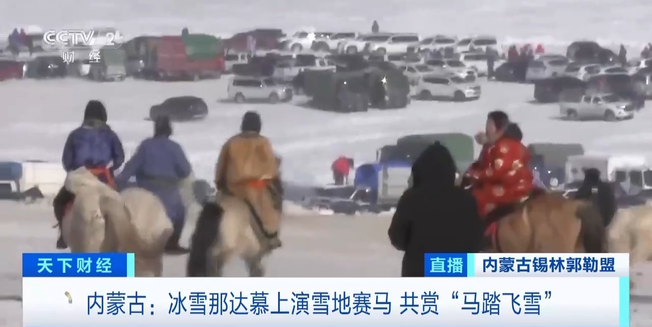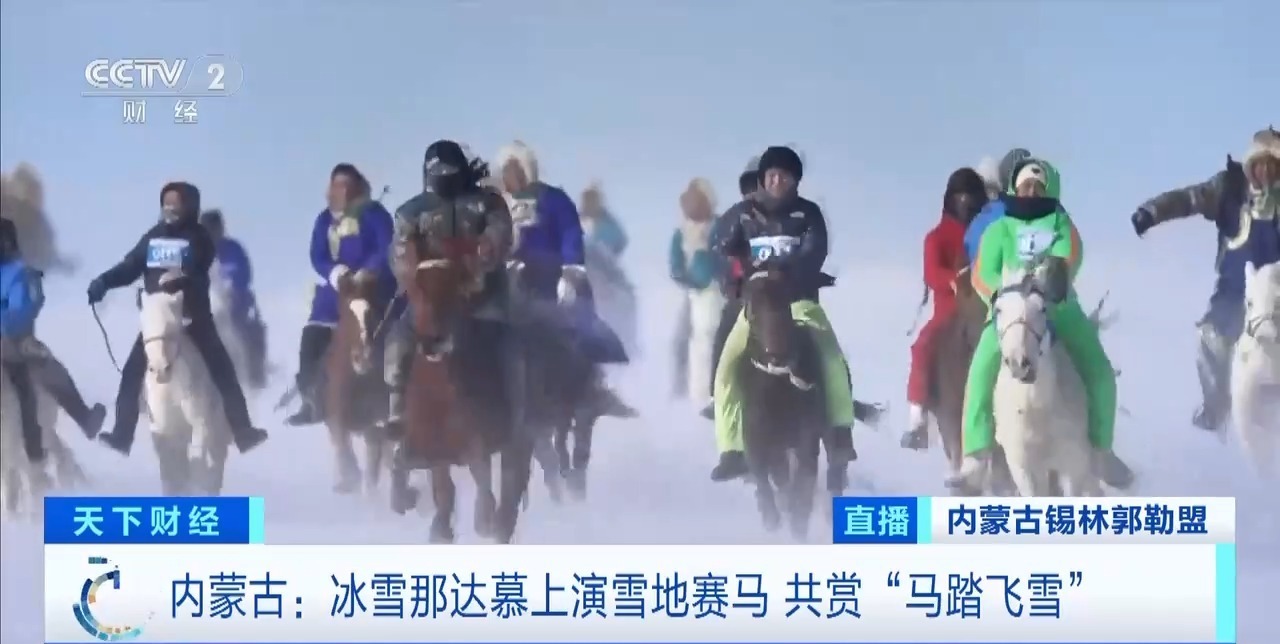 总台记者 赵思雯:内蒙古锡林郭勒盟锡林浩特市的毛登牧场,正在上演本次冬季冰雪那达慕活动中,最受关注的6000米团队接力赛马,来自锡林郭勒盟13个旗县的104支队伍将角逐出前三名。每支队伍由3名骑手组成,需要依次在周长2000米的长方形赛道上完成1圈跑马,至第3棒冲过终点线即为完赛。对于常年在广阔的草原上飞驰的马匹而言,要在规定赛道上完成直行、转弯等“固定动作”,考验的是骑手的技术。
