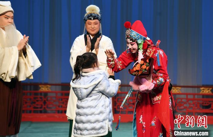 演出结束后,该剧主演刘泳渤谢幕间隙与一名走上舞台的女童互动。 中新网记者刘可耕摄