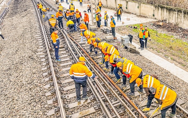 14时40分,施工“天窗”结束,线路正点开通。不远处的汉口火车站,传来火车的鸣笛声,在一旁目送第一辆列车平稳通过施工路段后,王前和工友们这才开始清点工机具,踏上返程路。
