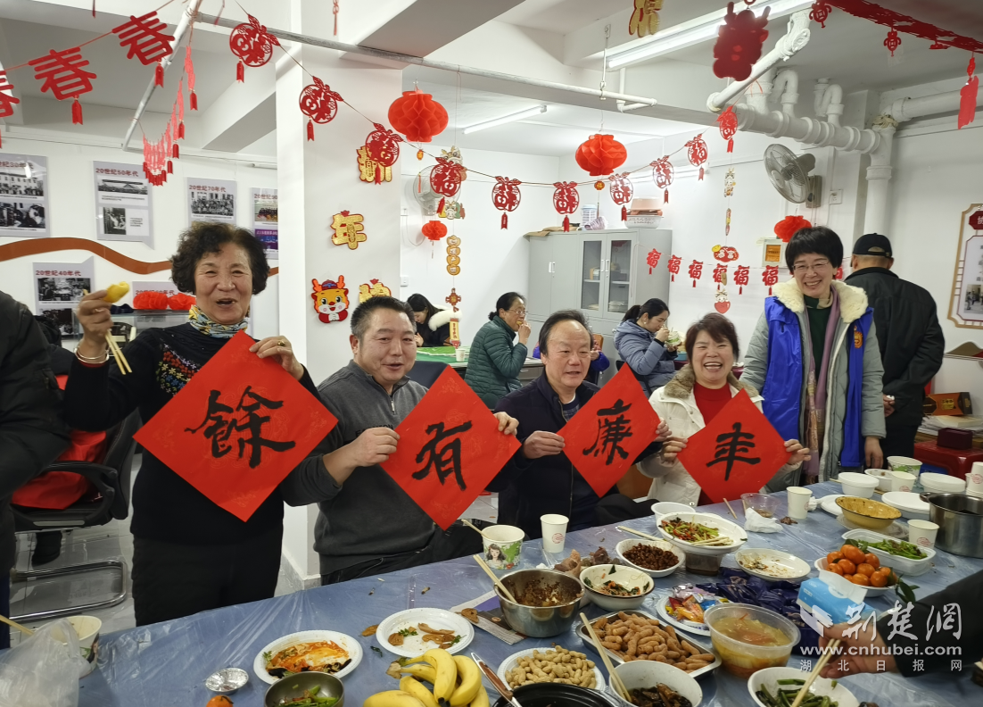 荆楚网(湖北日报网)讯(通讯员盛夏)“春节”,对于中国人来说有着别样的情感,团年饭则在春节里有着家人团圆与彼此关怀的寓意。1月27日晚,武汉市汉阳区紫荆花社区电信小区居民活动室里欢声笑语热闹非常,由社区牵头、热心居民自发组织的一桌热闹的团“廉”宴在这举行。