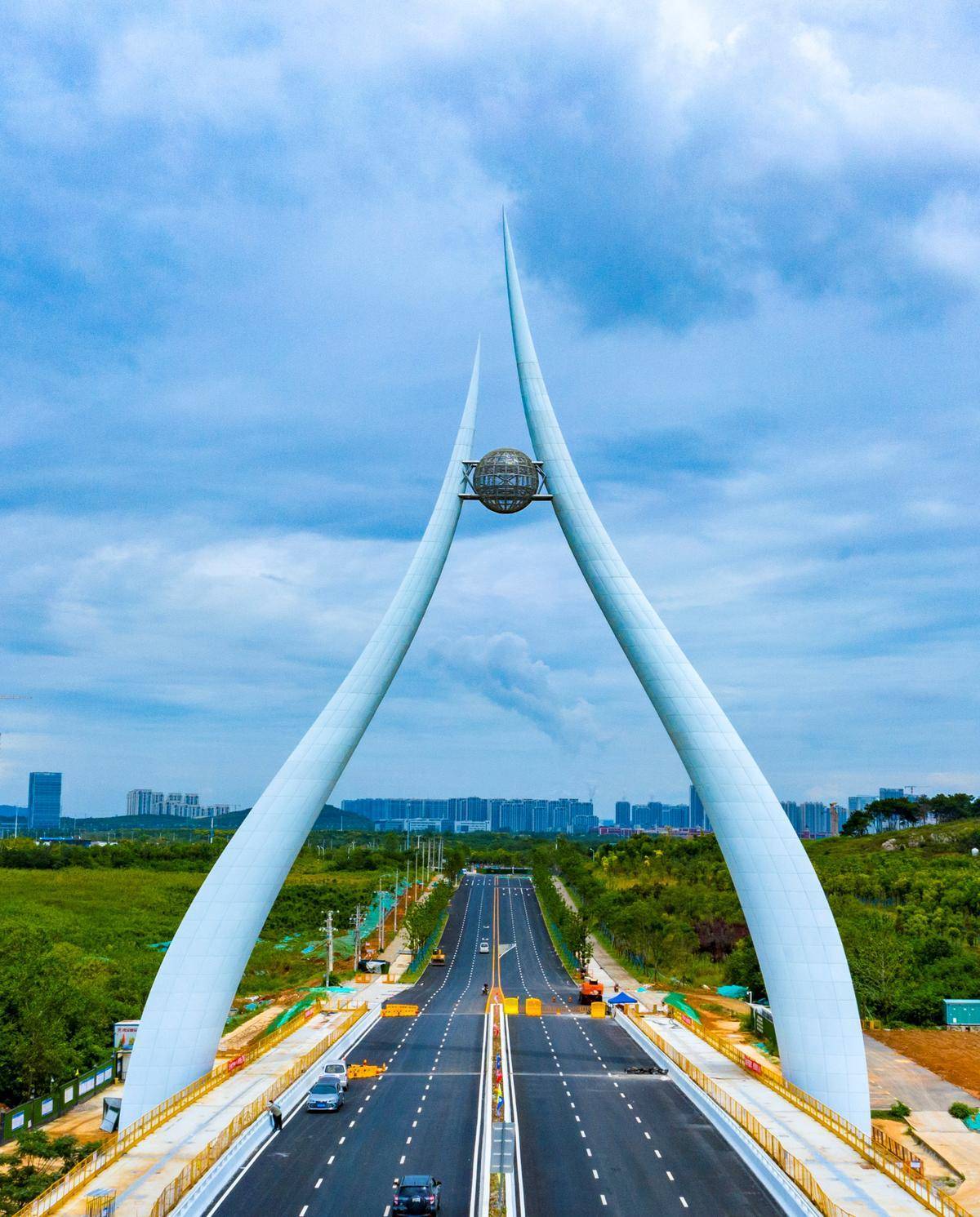 2023年9月14日,光谷未来一路与沪渝高速交会处,武汉新城中轴线上的新地标“光谷之珠”已经耸立起来。(湖北日报全媒记者 魏铼 摄)