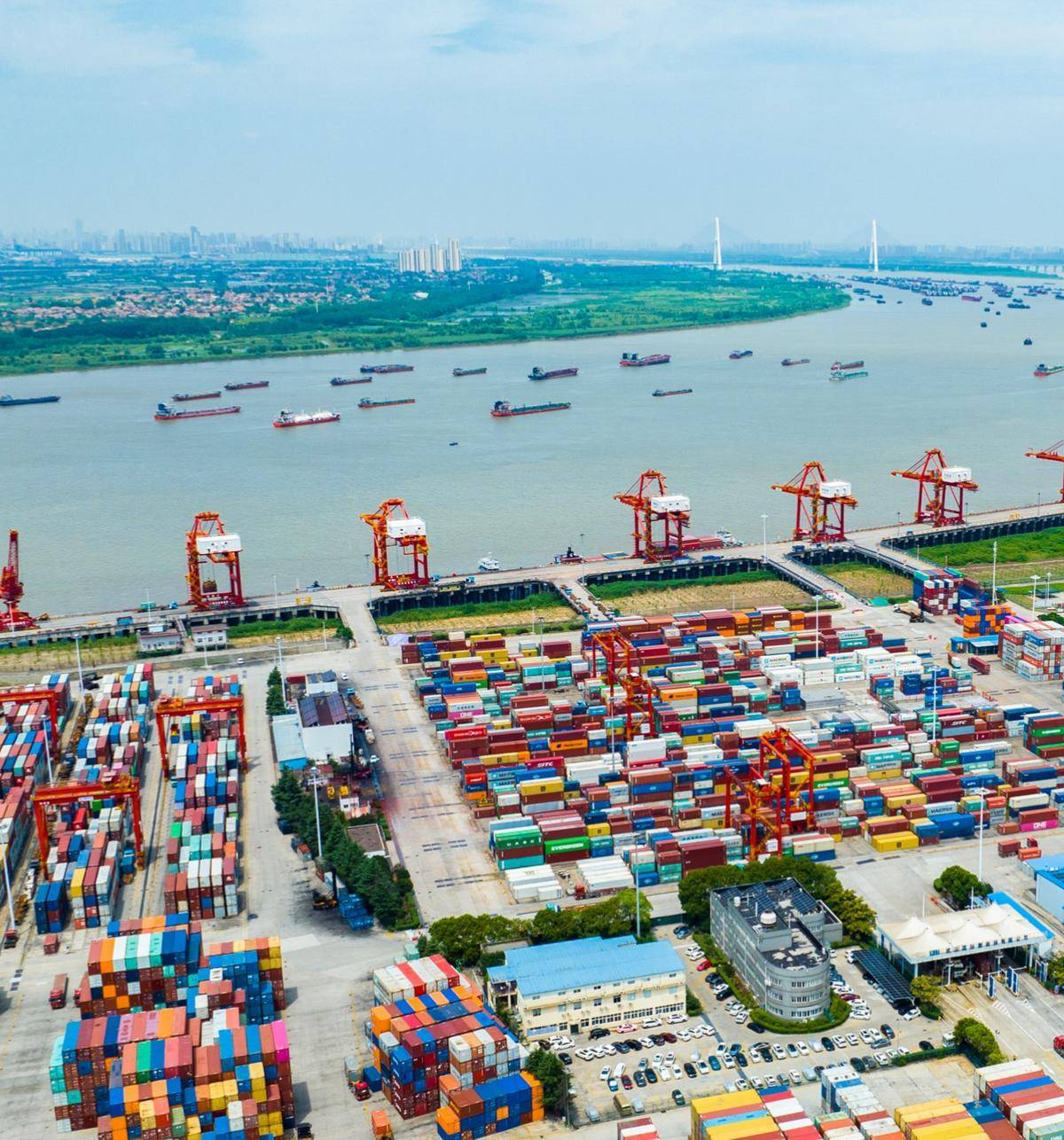 武汉长江中游航运中心核心港阳逻港。(湖北日报全媒记者 薛婷 摄)