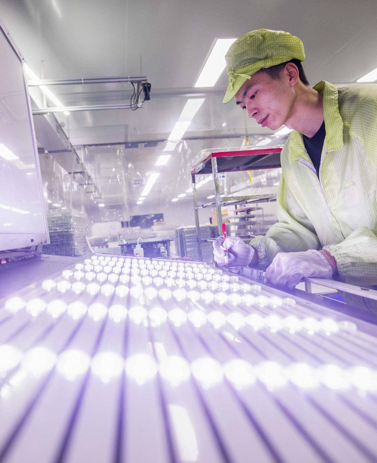 1月18日,武汉新城葛华片区,员工在湖北瑞华光电无尘车间赶制miniLED背光、触控显示屏等订单。(湖北日报全媒记者 薛婷 通讯员 李妮 摄)
