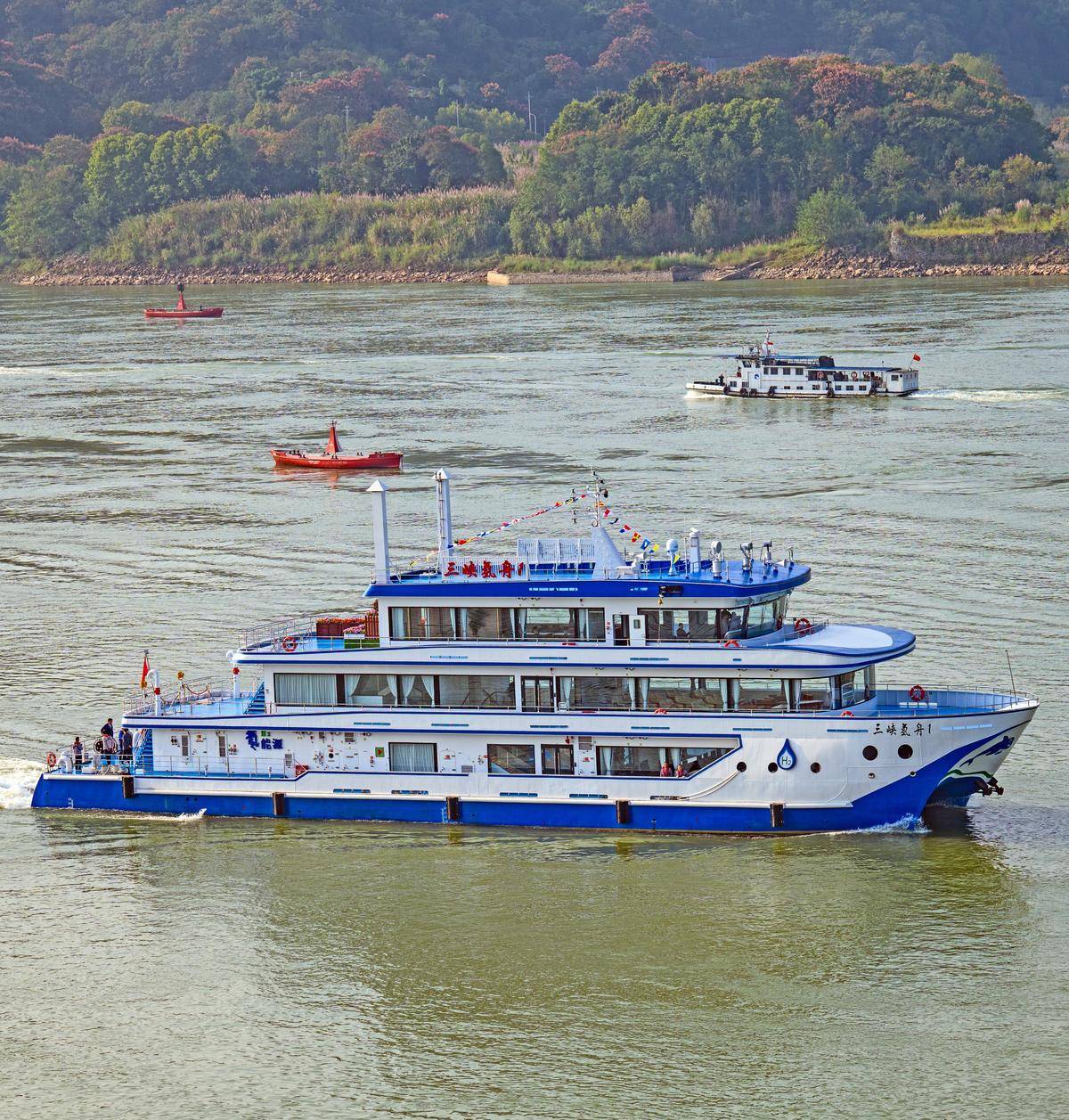 2023年10月11日上午,氢燃料电池动力示范船“三峡氢舟1”号在宜昌三峡游客中心完成首航。(湖北日报全媒记者 刘曙松 摄)