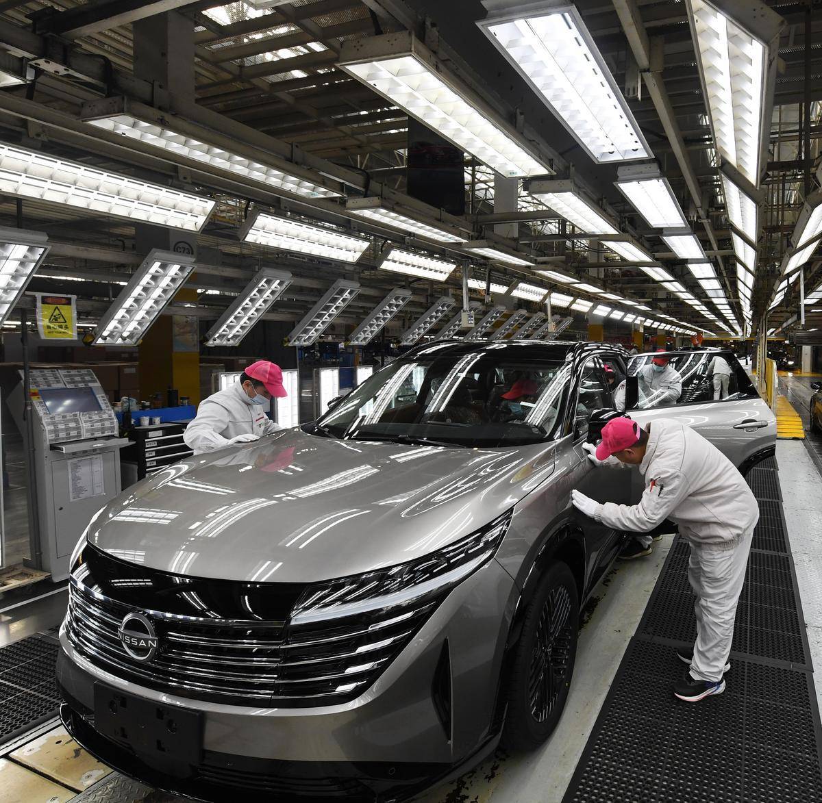 东风日产襄阳工厂检测线上,全新大家庭旗舰SUV“探陆”进行量产。(湖北日报全媒记者田悦 通讯员 赵静怡 摄)
