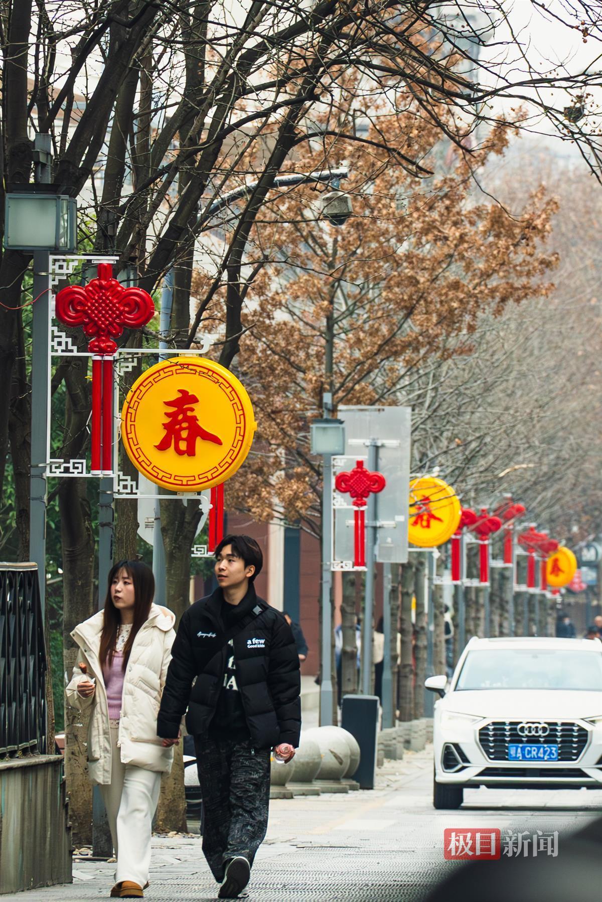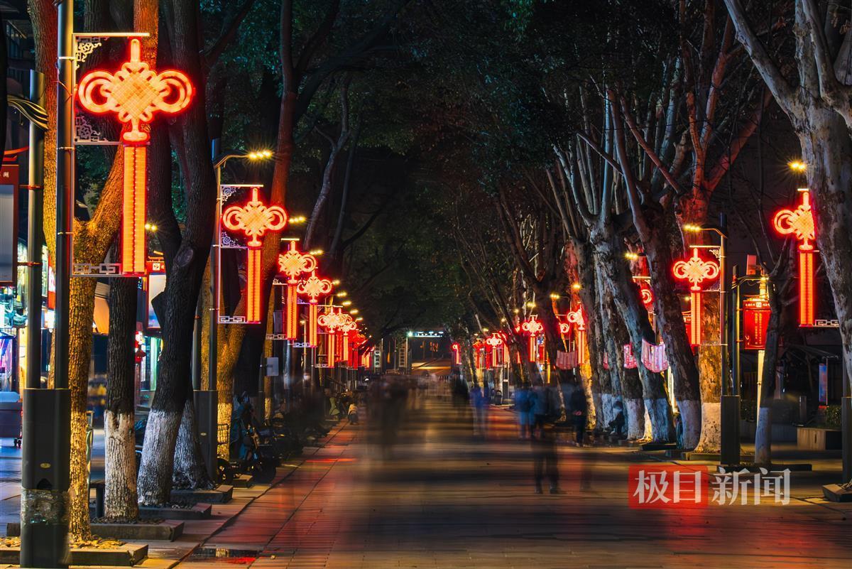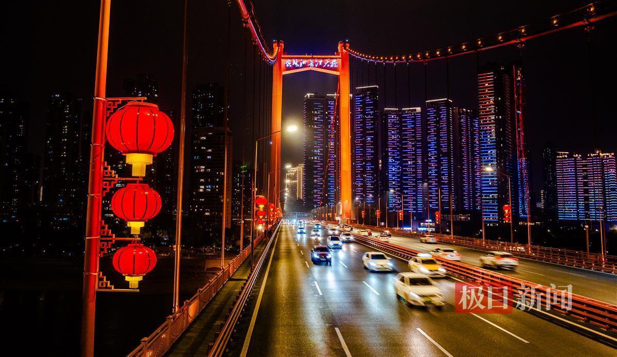1月29日晚,在武汉长江大桥、长江二桥及汉口沿江大道、武昌临江大道和东湖路上,极目新闻记者看到,大红灯笼已经点亮。武昌火车站周边、起义门周边和江岸区的解放公园路,中山大道,兴业路等路段,则张挂了中国结1500组,武昌昙华林、户部巷周边、首义广场悬挂“春”灯饰200余组,武昌水果湖步行街悬挂“美丽中国”字样灯80余组。