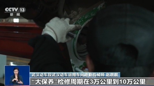 武汉动车段武汉动车运用车间地勤机械师 赵躜靓:不同的车型有不同的检修周期。一般“小保养”在48到72小时,或者是走行公里在4千公里到7千公里左右。“大保养”检修周期在3万公里到10万公里或者时间周期为1到2个月之间。
