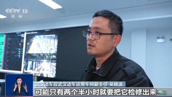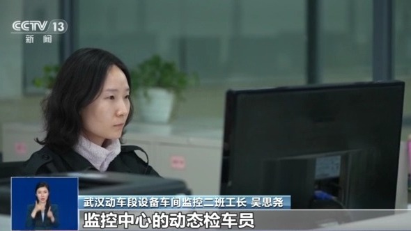 武汉动车段设备车间监控二班工长 吴思尧:我们是武汉动车段设备车间监控中心的动态检车员。我们不问人,我们问设备。我们是车辆进库检修的第一关,也是修完出库的最后一关。检修前动车有什么问题,检修后车辆的状态怎么样,问问这套设备就都清楚了。