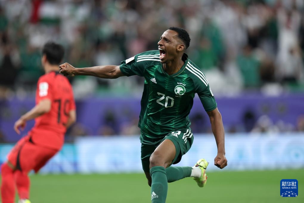 1月30日,沙特阿拉伯队球员阿卜杜拉·拉迪夫(左一)在下半场比赛开始后不久进球。新华社记者 孙凡越 摄