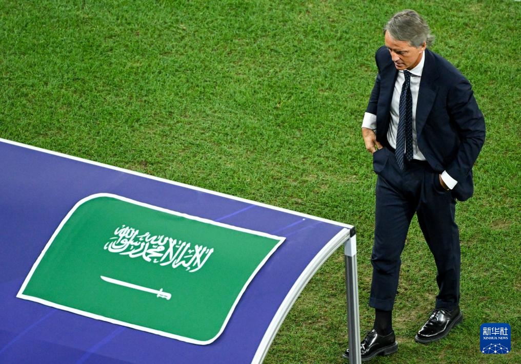 1月30日,沙特阿拉伯队主教练罗伯托·曼奇尼在场边。新华社记者 孙凡越 摄