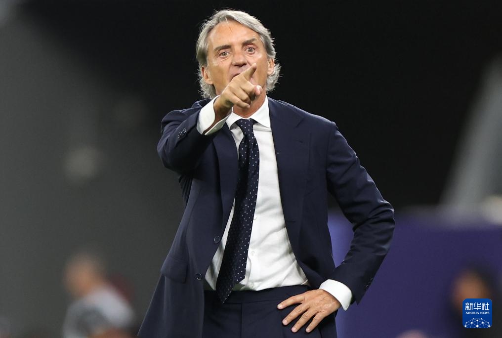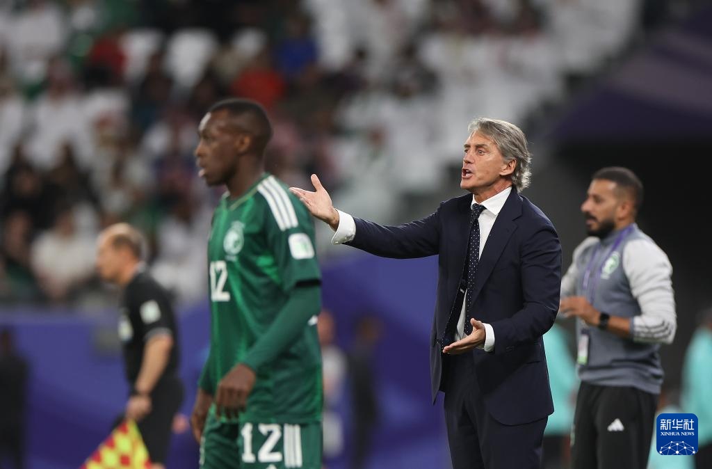 1月30日,沙特阿拉伯队主教练罗伯托·曼奇尼在场边指挥。新华社记者 曹灿 摄