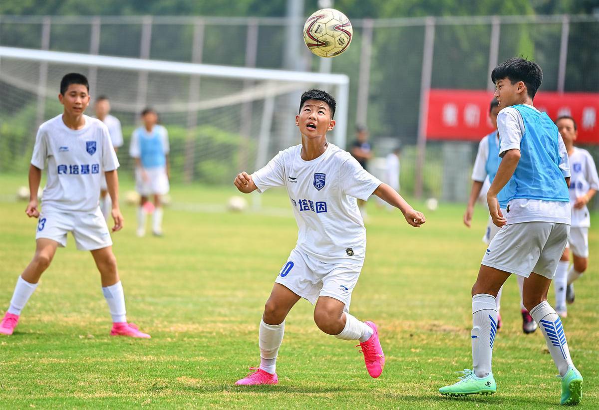 2023年8月10日,武汉全民健身中心的足球场上,青少年顶着烈日愉快地奔跑,享受足球带来的快乐。(湖北日报全媒记者 朱熙勇 摄)