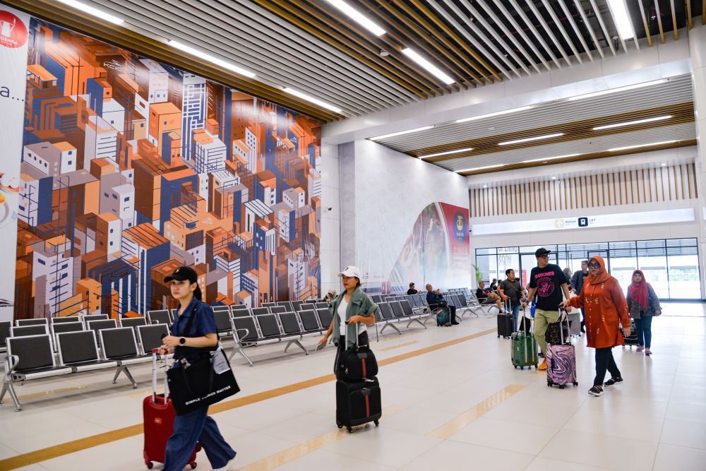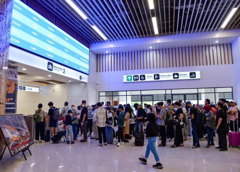↑乘客在雅加达哈利姆站大厅内行走。