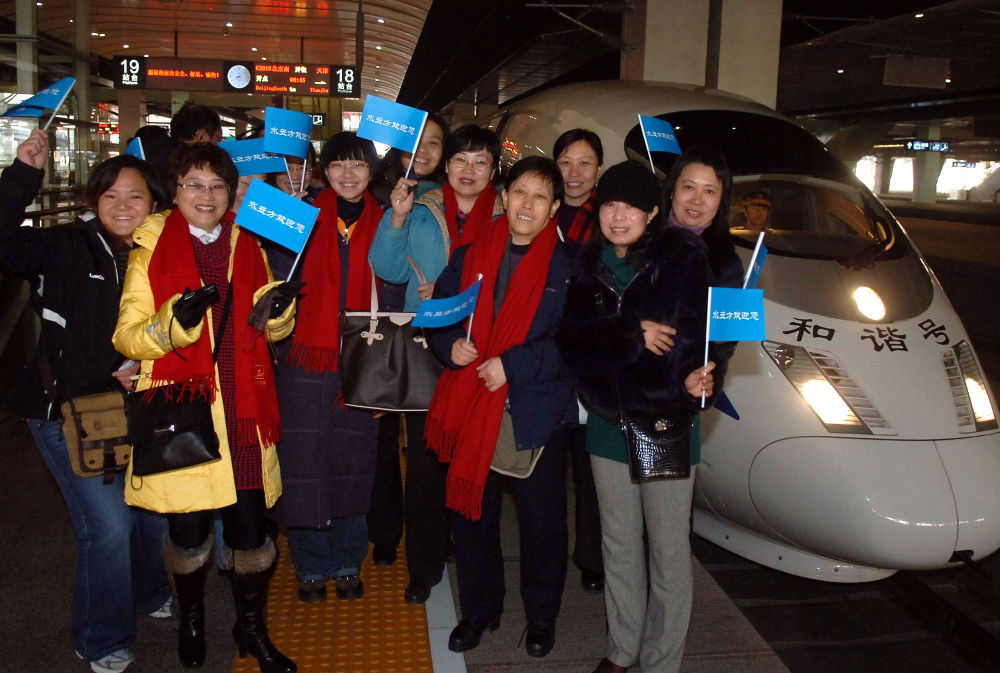 ↑2009年1月18日,京津旅游合作北京首发团的游客在北京南站准备乘车前往天津。当日,北京和天津两地旅游区域合作正式启动。