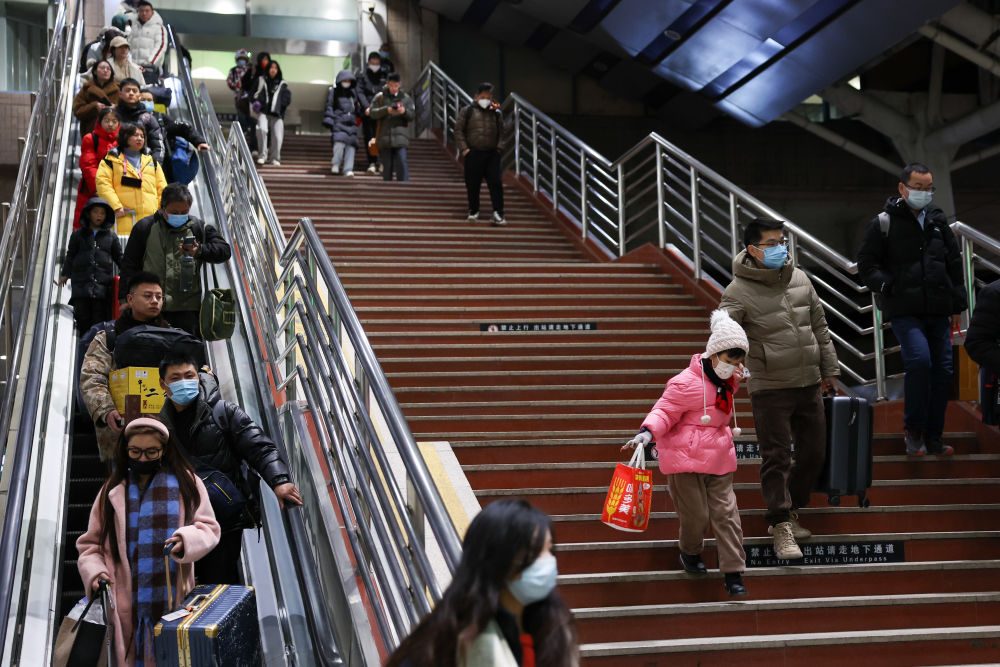 ↑2024年1月26日,在北京西站,旅客准备乘车。