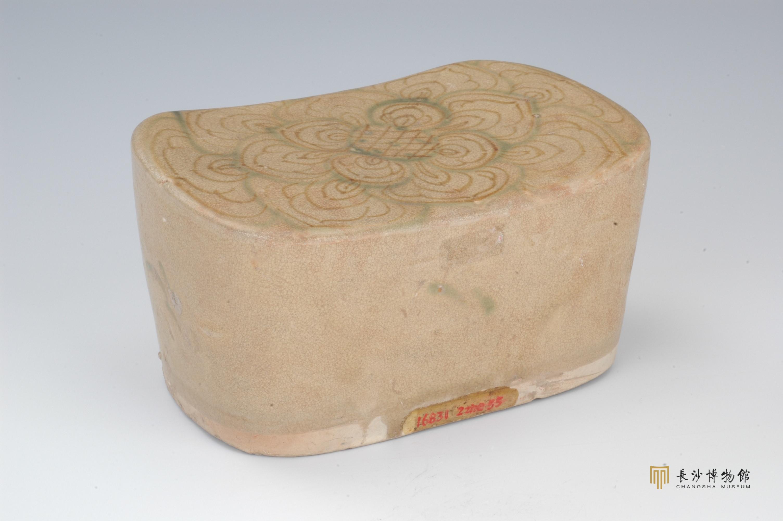 △唐 长沙窑青釉褐绿彩花卉纹瓷枕
