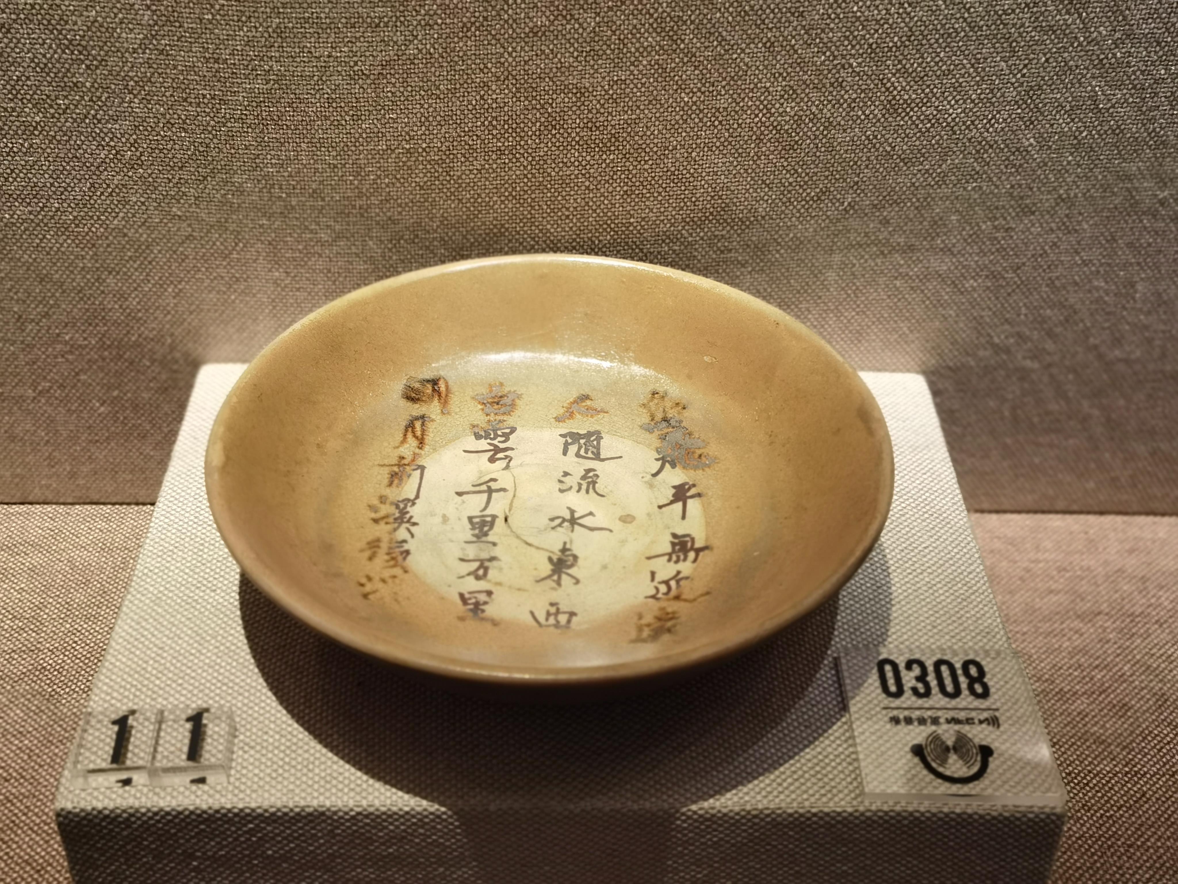△展出中的青釉“鸟飞平无近远”瓷盘。
