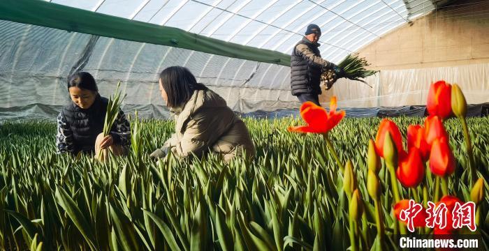 春节临近,年味渐浓。连日来,不少兰州市民选择购买鲜花装点家居,增添节日的喜庆氛围。在秦川园区现代农业产业园,30万株含苞待放的郁金香陆续上市香飘全国。
